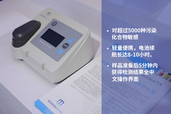 展会中Modern Water 展出了便携式生物毒性检测仪 Microtox FX 、便携式重金属检测仪 PDV 6000ultra和微生物检测套装在内的便携式仪器,吸引了来自环保、低碳等部门的相关观众驻足观看。